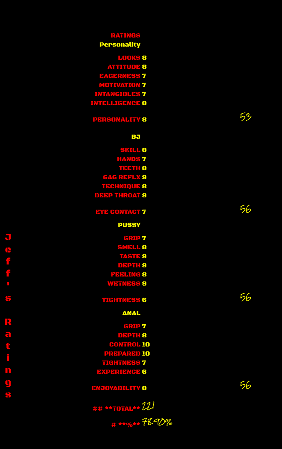 JEFF'S RATINGS 78.90%